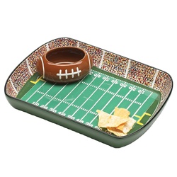 12.5 pouces x 9.5 pouces x 3.7 pouces en céramique stade de football puce et trempette ensemble de service sportif pour la fête du Football Gameday